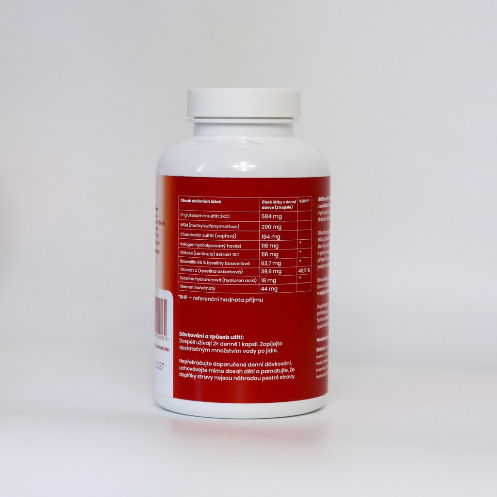 D-glukosamin sulfát 2KCl, MSM (methylsulfonylmethan), chondroitin sulfát (vepřový), kolagen hydrolyzovaný hovězí (typ II), shiitake (Lentinula edodes, extrakt 10:1), boswellia (extrakt 65 % kyselin boswellových), vitamín C (kyselina askorbová), kyselina hyaluronová (hyaluron acid), stearan hořečnatý.